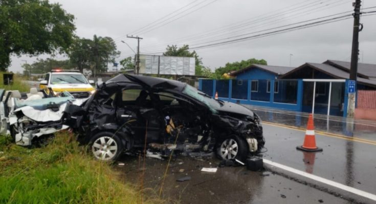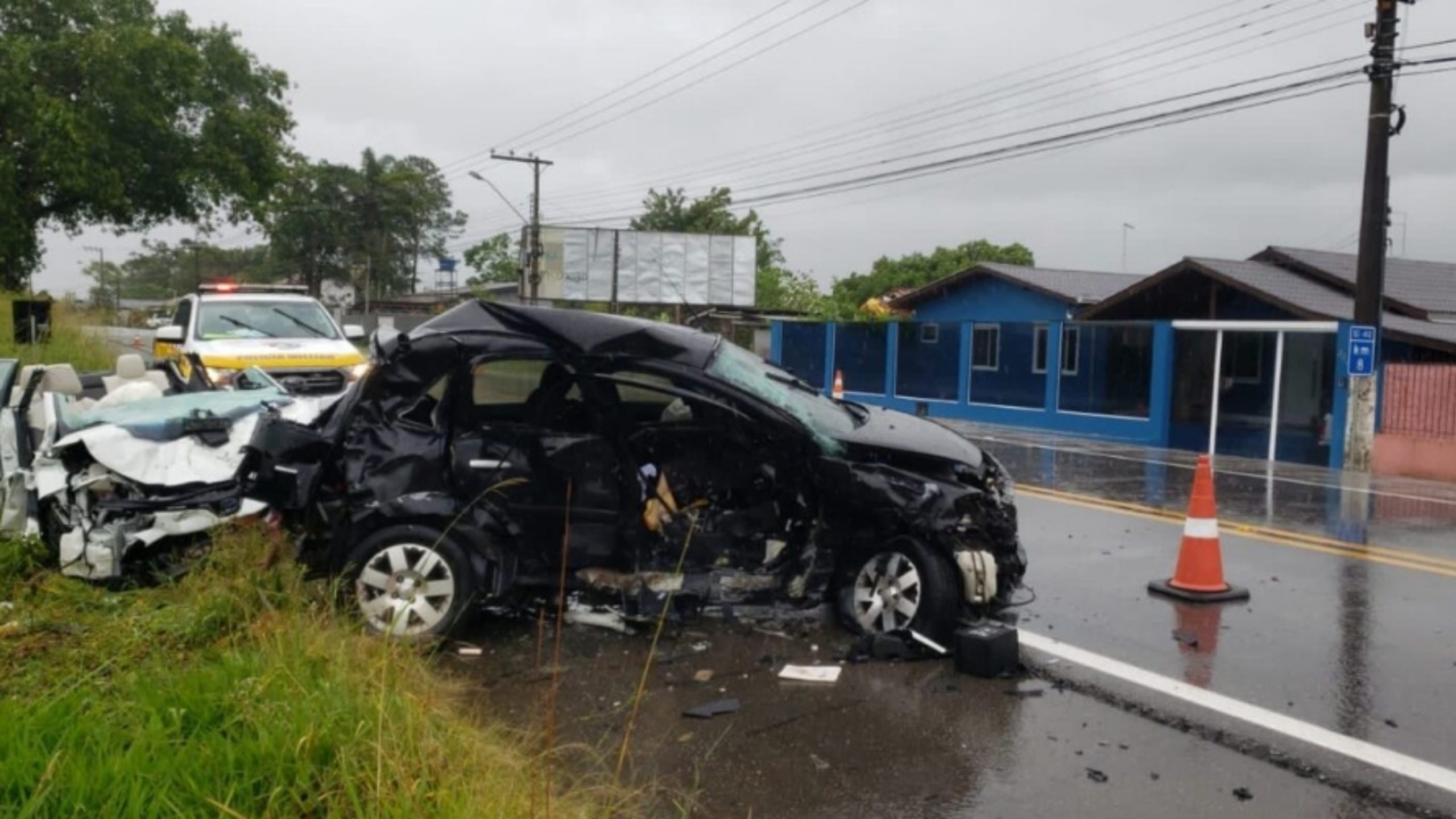 O acidente foi entre um Corolla e um Citröen C3 tirou a vida de uma mulher, de 48 anos, na Rodovia Jorge Lacerda, no Km 8, em Ilhota, perto das 13h deste sábado (26).