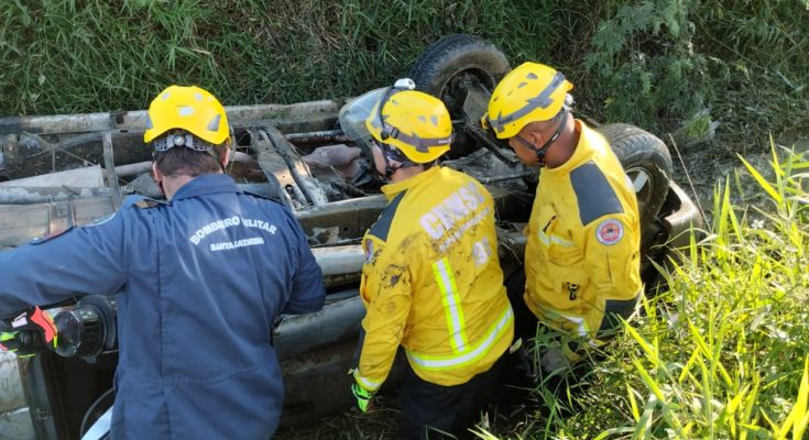 Ao chegarem ao local, os bombeiros encontraram um cenário angustiante. A primeira vítima, um homem adulto, estava consciente, porém desorientado e deitado ao solo. Ele apresentava sinais preocupantes, incluindo suspeita de traumatismo craniano e hemorragia interna. O homem informou aos socorristas que sua esposa estava no interior do veículo, levantando a urgência nas buscas pela segunda vítima.