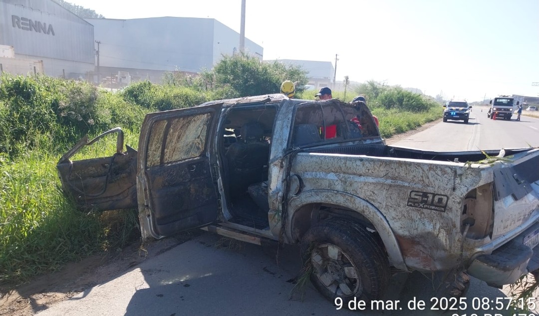 Na manhã deste domingo, 09 de março de 2025, um grave acidente na BR-470 em Navegantes resultou em uma tragédia que abalou a comunidade local. O Corpo de Bombeiros Militar de Navegantes foi acionado para atender a uma ocorrência de capotamento de um veículo Chevrolet S10, que acabou projetado sobre a valeta que margeia a rodovia.