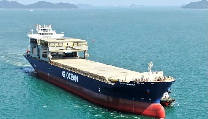 A estreia da JBS no Porto de Itajaí, onde um navio de bandeira norueguesa chamado STAR LYSEFJORD traz um carregamento de veículos da montadora chinesa BYD.