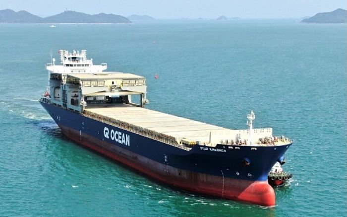 A estreia da JBS no Porto de Itajaí, onde um navio de bandeira norueguesa chamado STAR LYSEFJORD traz um carregamento de veículos da montadora chinesa BYD.