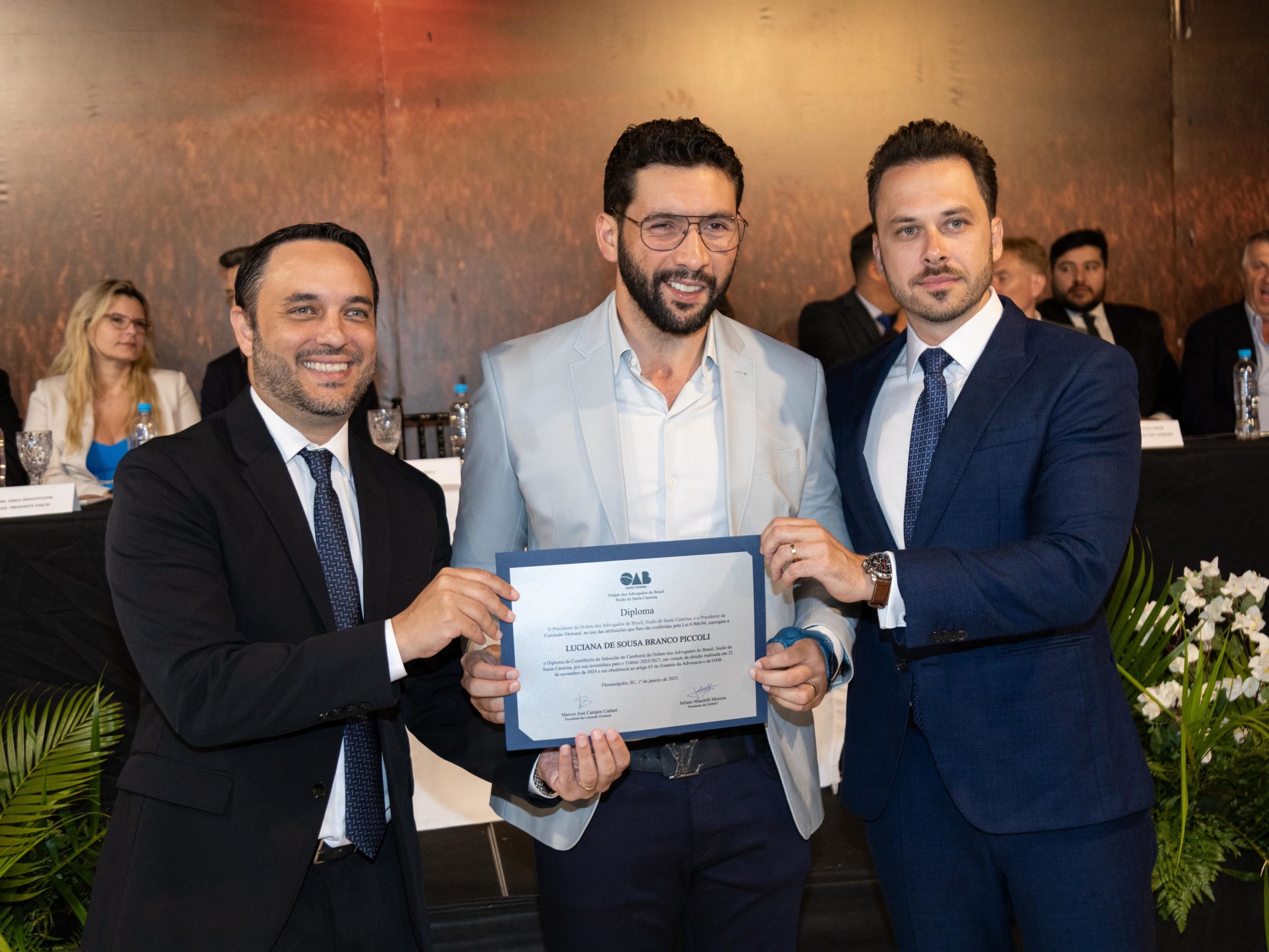 Em uma cerimônia marcada pela emoção e respeito, o vereador Victor Piccoli recebeu, em nome de sua falecida mãe, a advogada Luciana Piccoli, a homenagem que reconhece sua indicação ao cargo de conselheira da Ordem dos Advogados do Brasil – OAB Subseção Camboriú. A homenagem póstuma foi entregue durante a posse da nova diretoria, realizada na noite de quarta-feira (19). A advogada, infelizmente, faleceu antes de assumir o cargo, mas deixou um legado de importância para a comunidade jurídica local.