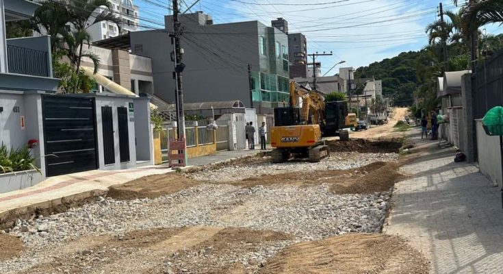 O último trecho da Rua Santa Cecília está em fase de execução, com o preparo da base com pedra rachão, para receber a pavimentação asfáltica. A obra tem ao todo 1,8km, com área total de 14.328 m², que vai desde o fim da parte pavimentada com lajotas até a divisa com o município de Itajaí.