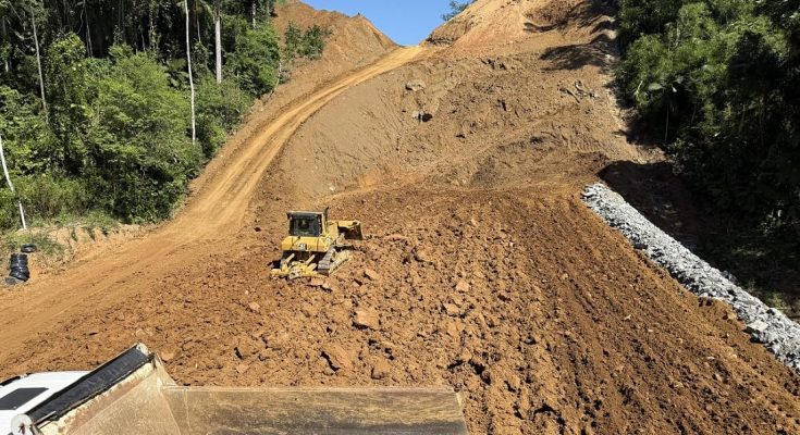 “Já pavimentamos trechos e concluímos a ponte sobre o rio Itapocuzinho, além de intersecções nos km 51 e 53, em Guaramirim”, informa o DNIT/SC.