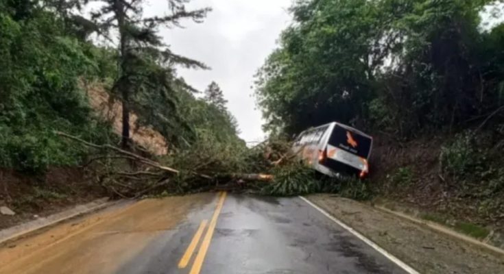 Um ônibus de turismo que transitava na SC-350, entre Ituporanga e Alfredo Wagner foi atingido por uma queda de barreira nesta sexta-feira (17).
