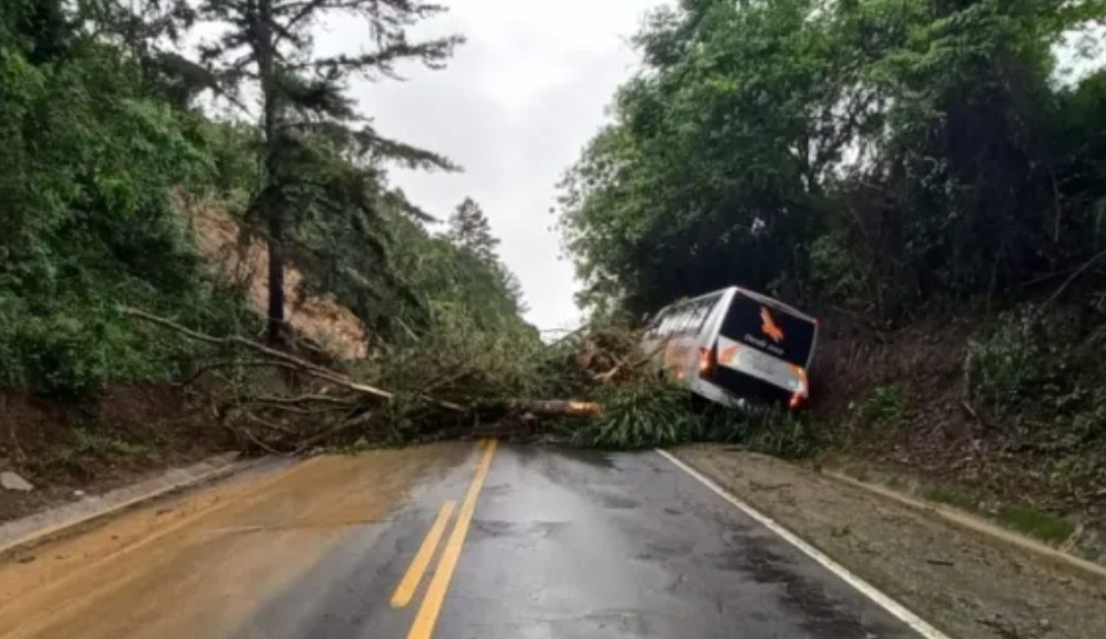 Um ônibus de turismo que transitava na SC-350, entre Ituporanga e Alfredo Wagner foi atingido por uma queda de barreira nesta sexta-feira (17).
