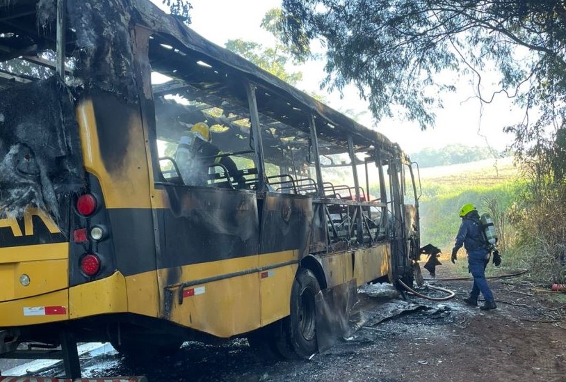 O Corpo de Bombeiros relatou que o coletivo pegou fogo em um local a cerca de 10 quilômetros de distância do quartel. A guarnição informou que algumas pessoas estavam no veículo, não alunos, mas ninguém se machucou.