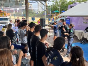 Balneário Camboriú recebeu, na quinta-feira (18), o Ônibus Lilás do Governo do Estado de Santa Catarina. Com programação voltada à conscientização sobre a violência contra a mulher, a iniciativa reuniu cerca de 400 participantes na Praça do Pescador – localizada no Bairro da Barra – e no Centro Educacional Municipal Vereador Santa – no Centro – das 9h às 17h.