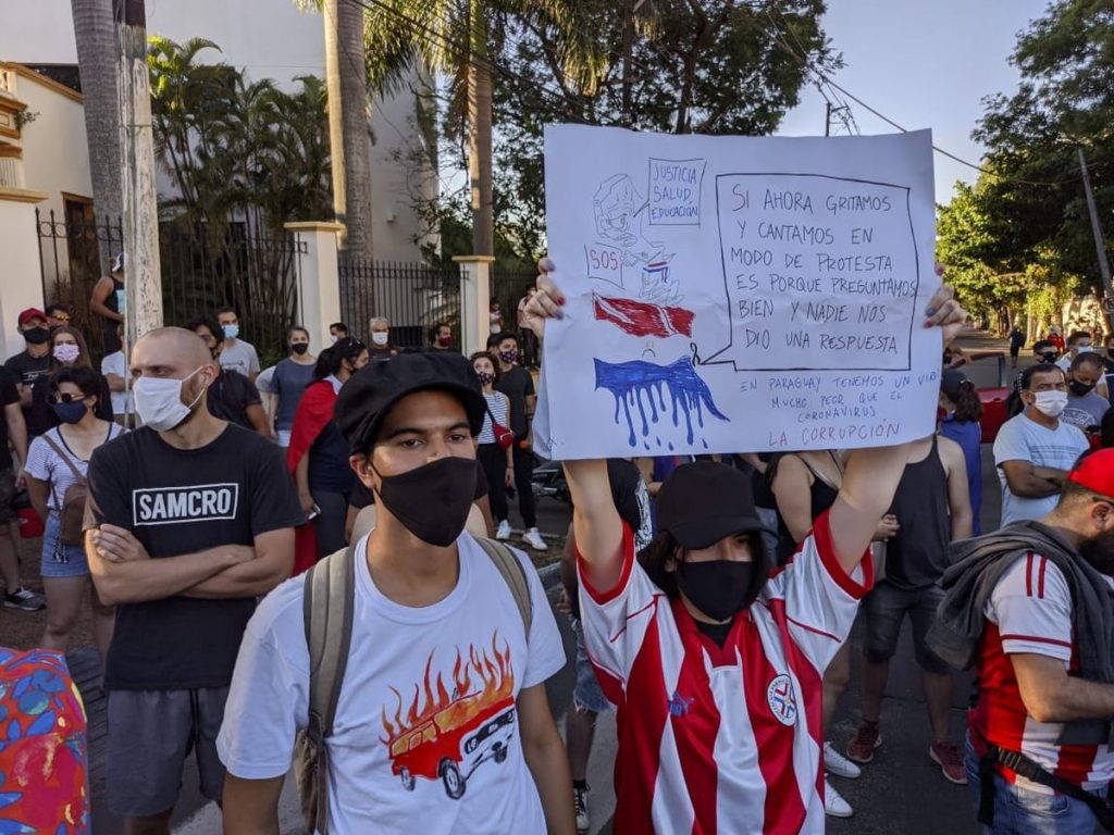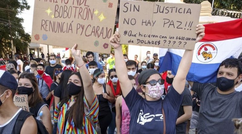 Centenas de paraguaios protestaram nessa 6ª feira (5.mar.2021) contra o presidente, Mario Abdo Benítez, pela má gestão da pandemia de covid-19. Os manifestantes pedem a saída de Marito, como é conhecido.