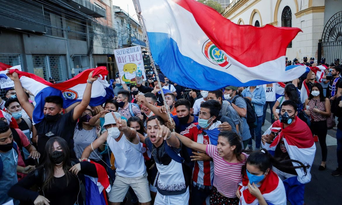 Centenas de paraguaios protestaram nessa 6ª feira (5.mar.2021) contra o presidente, Mario Abdo Benítez, pela má gestão da pandemia de covid-19. Os manifestantes pedem a saída de Marito, como é conhecido.