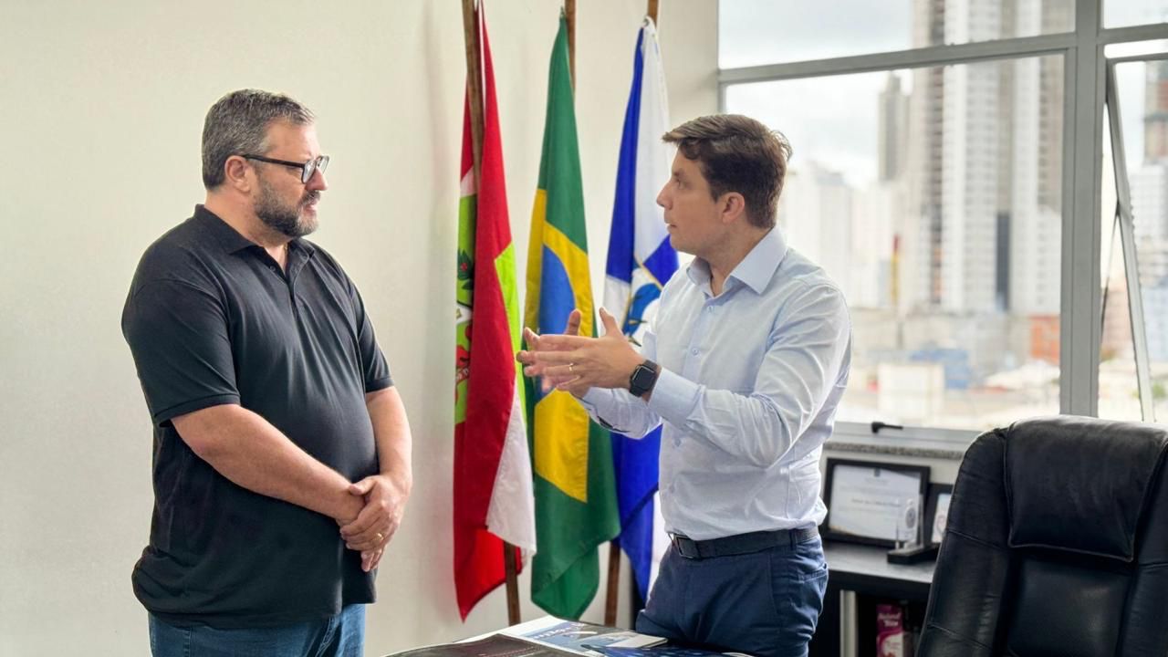 O prefeito Fabrício Oliveira, de Balneário Camboriú, recebeu na manhã desta terça-feira (31), em seu gabinete, o prefeito de Camboriú, Élcio Kuhnen. Na pauta, a construção de uma agenda emergencial que contemple medidas conjuntas relativas aos recursos hídricos das duas cidades irmãs e a questão do saneamento.