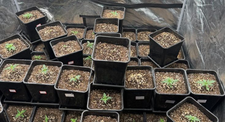 Durante a verificação do imóvel, com a autorização do morador, os policiais localizaram, em um dos quartos, duas estufas contendo sessenta e sete pés de maconha, além de insumos, equipamentos de cultivo, cerca de vinte e oito gramas da droga já embaladas e uma balança de precisão.