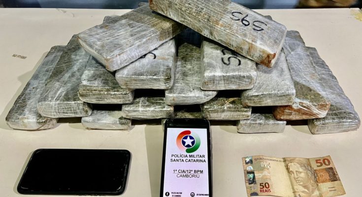 O TÁTICO Camboriú realizava rondas quando foi abordado por populares afirmando que dois homens estariam em atitude suspeita em frente a uma residência. De pronto, os policiais deslocaram para averiguação quando avistaram os suspeitos com as características repassadas. Chamou a atenção o fato de ambos estarem carregando sacolas vermelhas. Procedida abordagem, foram localizadas 8 embalagens de maconha em cada sacola, totalizando 16 tabletes.