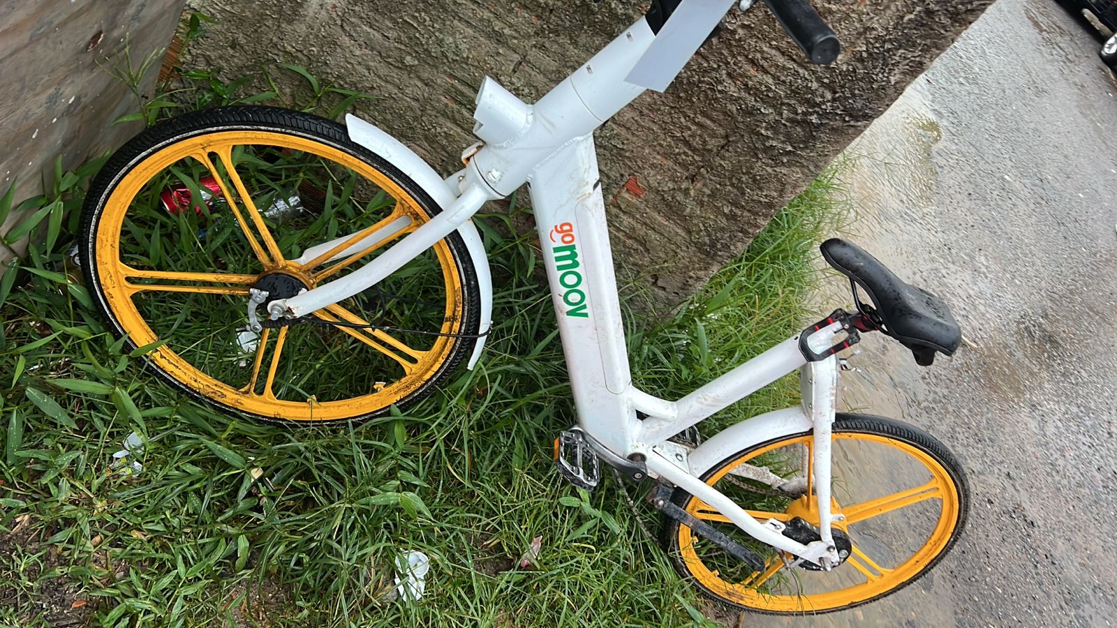 ‘Ao chegar junto ao objeto, identificou se tratar de uma Bicicleta de uma empresa que presta seus serviços de aluguéis de bicicleta na cidade de Balneário Camboriú.”