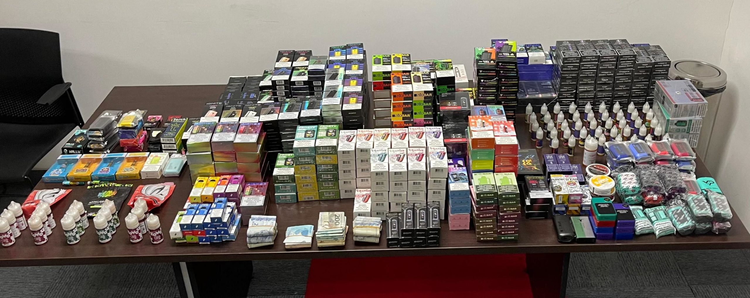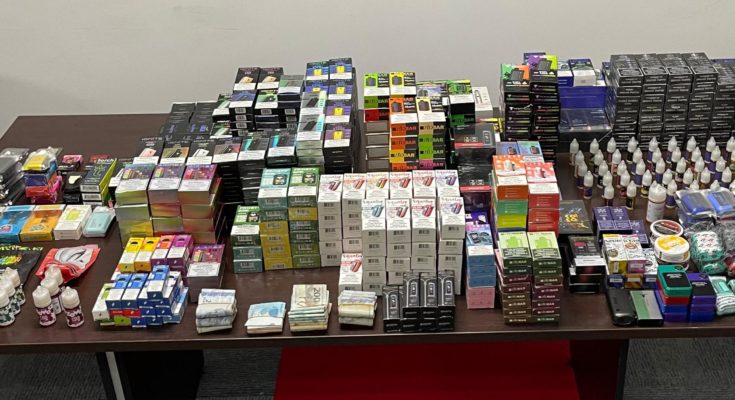 Já no imóvel, a segunda suspeita estava em posse de 19 dispositivos eletrônicos (PODS) contendo THC, 9 gramas de maconha prensada, 3 sacos de goma de mascar com THC, 16 frascos com extração de óleo de CBD, 736 cigarros eletrônicos, 2 canetas de cigarro eletrônico, 4 smartphones, 2 máquinas de cartão de crédito além da quantia de R$ 8.792,00 reais em espécie.