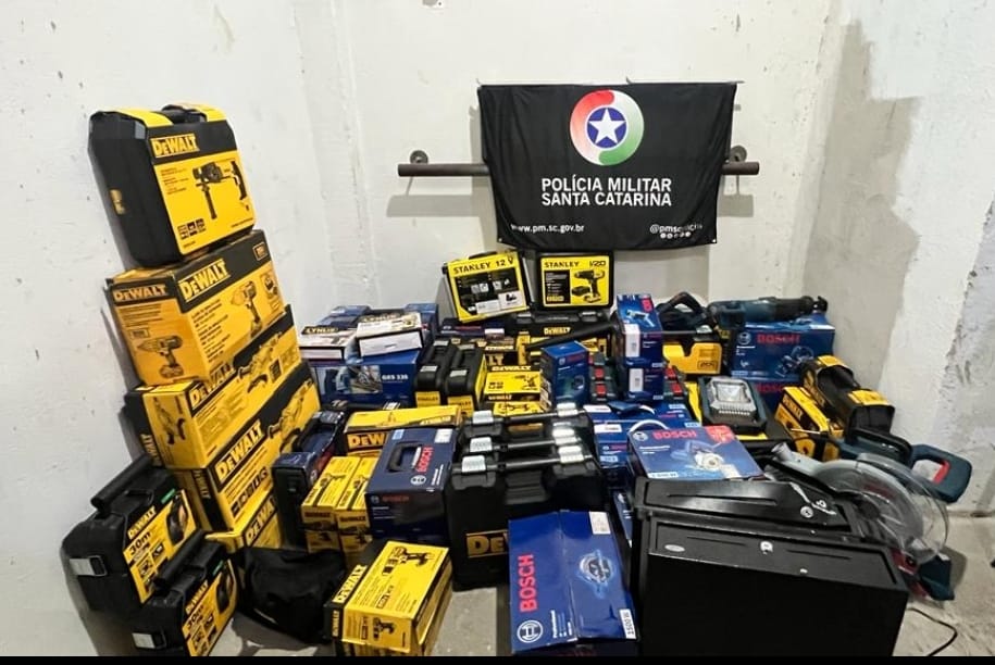 No interior do veículo foi encontrado todo o material subtraído, com valor aproximado de 100 mil reais. Em consulta, verificou-se que o referido automóvel estava com placas adulteradas e havia sido furtado no município de Barra Velha, no mês de abril. Já a motocicleta subtraída foi encontrada na rua Macieira.
