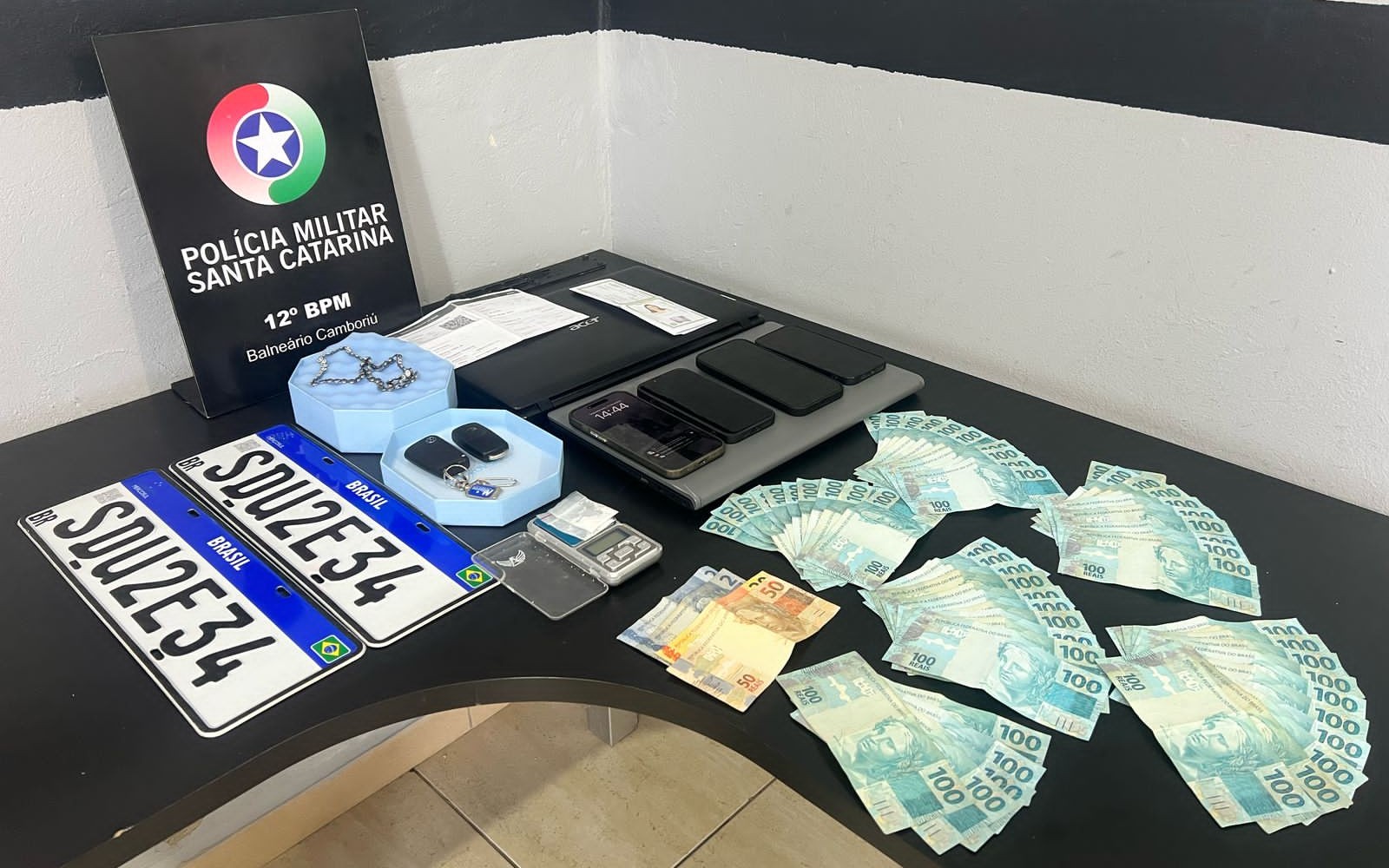 Além da recuperação do veículo, um dos ocupantes, 34 anos, foi identificado como foragido da justiça. Com os abordados, foram encontrados quatro celulares, mais de R$ 5,5 mil em dinheiro e um documento de veículo com indícios de falsificação.