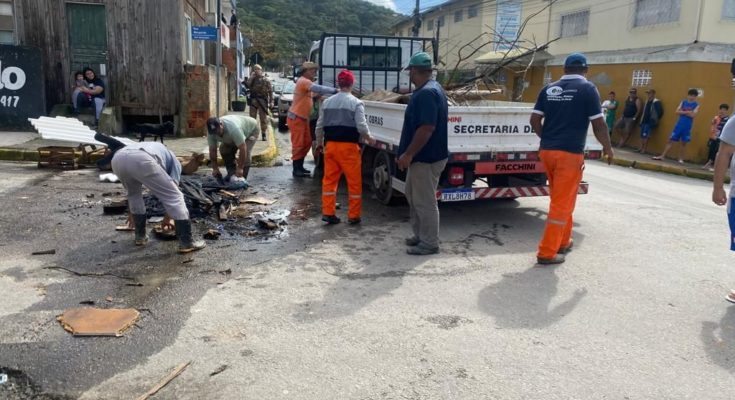 O Bombeiro Militar esteve no local e apagou o fogo e a Secretaria de Obras procedeu a retirada dos entulhos.