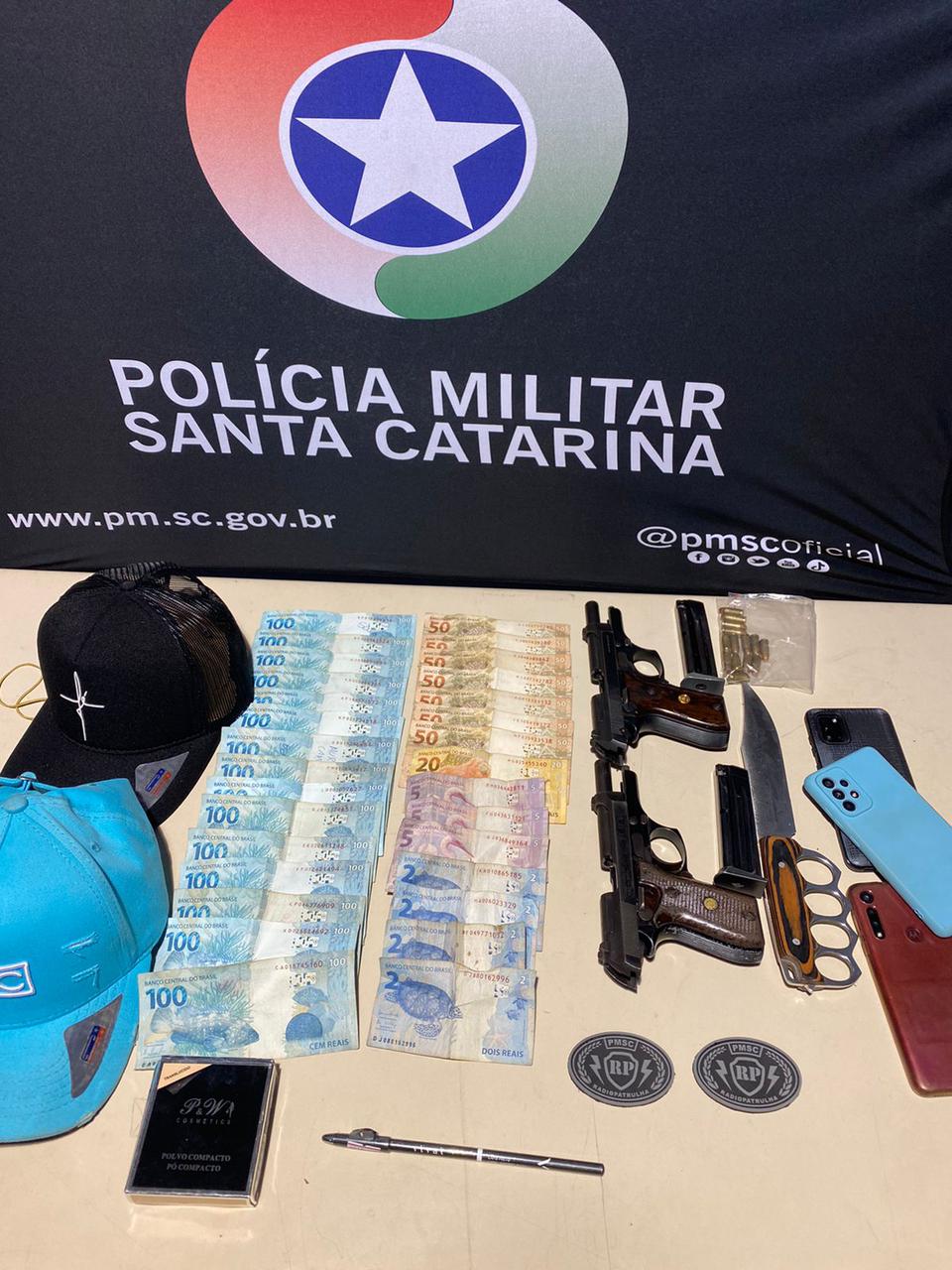 Durante buscas, foram encontradas duas pistolas calibre 7.65mm, além de munições e outros objetos.