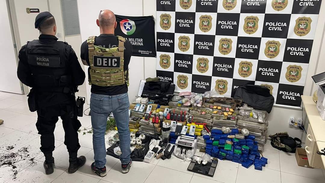 Durante as buscas, foram apreendidas grande quantidade de drogas diversas (maconha prensada e em mudas, haxixe, cocaína e ecstasy), além de um kit roni, munições diversos calibres (inclusive de fuzil), acessórios de armas de fogo, colete balístico, balanças de precisão, rádio comunicador, máquina de contar dinheiro e anotações de contabilidade do tráfico.
