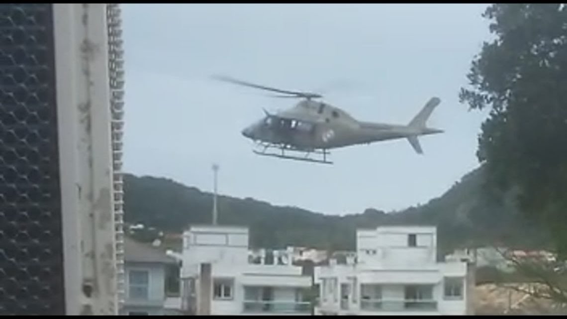 Desde 6h, um helicóptero da PM sobrevoou diversos pontos de Ingleses com policiais pendurados na porta em busca do suspeito de atirar contra o policial Luiz Fernando de Oliveira, 35 anos, que atuava há 9 anos na corporação.