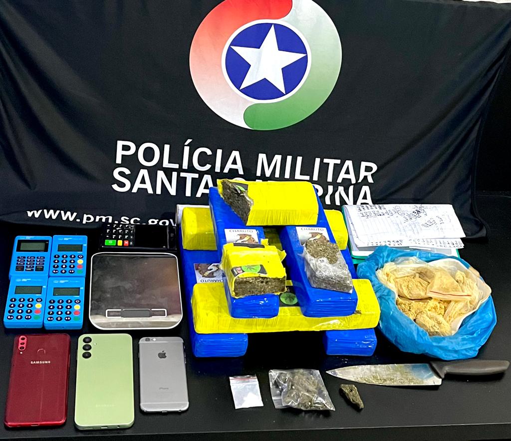 No interior da casa, foram encontrados diversos tabletes de maconha, MDMA e cocaína.