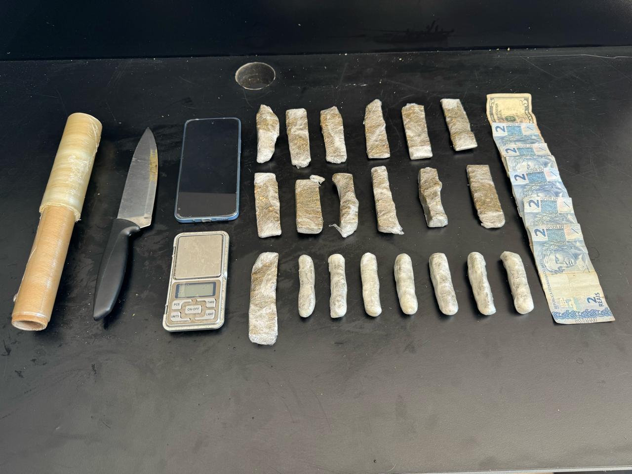 Durante a busca, foram encontrados mais de 300 gramas de maconha, o que reforça as suspeitas de que a residência funcionava como ponto de venda de drogas.