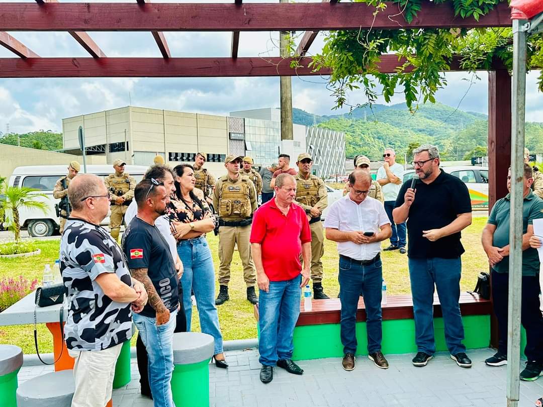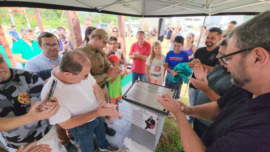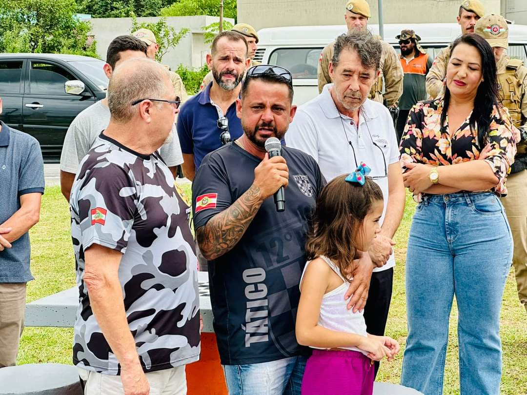 Emocionado e representando a família do sargento Orlando, Fabiano Moreira Moska agradeceu a homenagem ao seu pai. O vice prefeito, Júnior Cardoso e diversas autoridades políticas, policiais e a comunidade também participaram da solenidade.