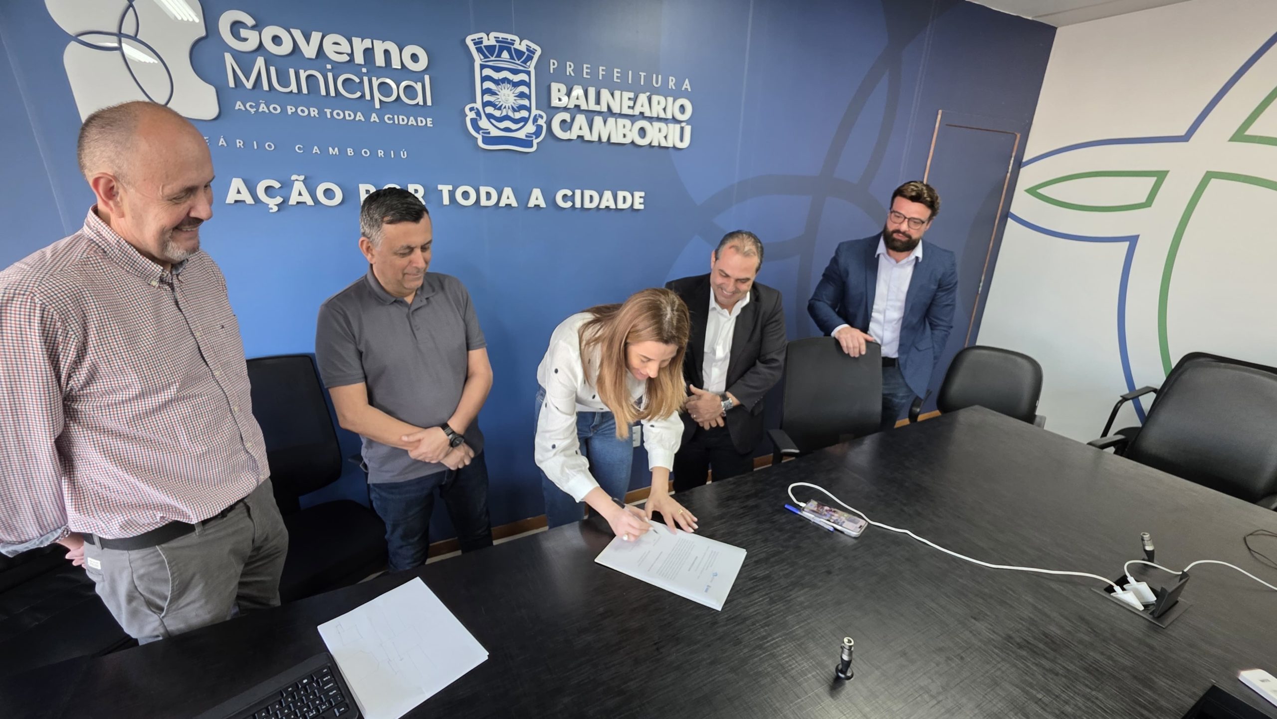 Na tarde desta terça-feira (14), a prefeita de Balneário Camboriú, Juliana Pavan, assinou mais uma ordem de serviço para a execução, por meio da Emasa, de mais uma importante obra de modernização do sistema de esgotamento sanitário do município. O contrato, no valor de R$ 2.510.809,03, foi firmado com a empresa Hidropav Construtora e Participações Ltda, vencedora do processo licitatório. A obra prevê a execução de um novo coletor tronco de esgoto pelo método não destrutivo, além da implantação de nova rede auxiliar e respectivas ligações prediais pelo método convencional, e execução de poços de visita na Rua 3700, entre as avenidas Atlântica e Brasil, no Centro.