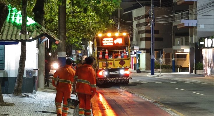 A Prefeitura de Balneário Camboriú, por meio da Autarquia Municipal de Trânsito (BC Trânsito), iniciou na noite desta terça-feira (11) a pintura da ciclofaixa na Avenida Atlântica, na altura da Rua 2800. A ação faz parte de um amplo pacote de requalificação da sinalização viária que contempla toda a extensão da avenida e diversas outras vias da cidade.