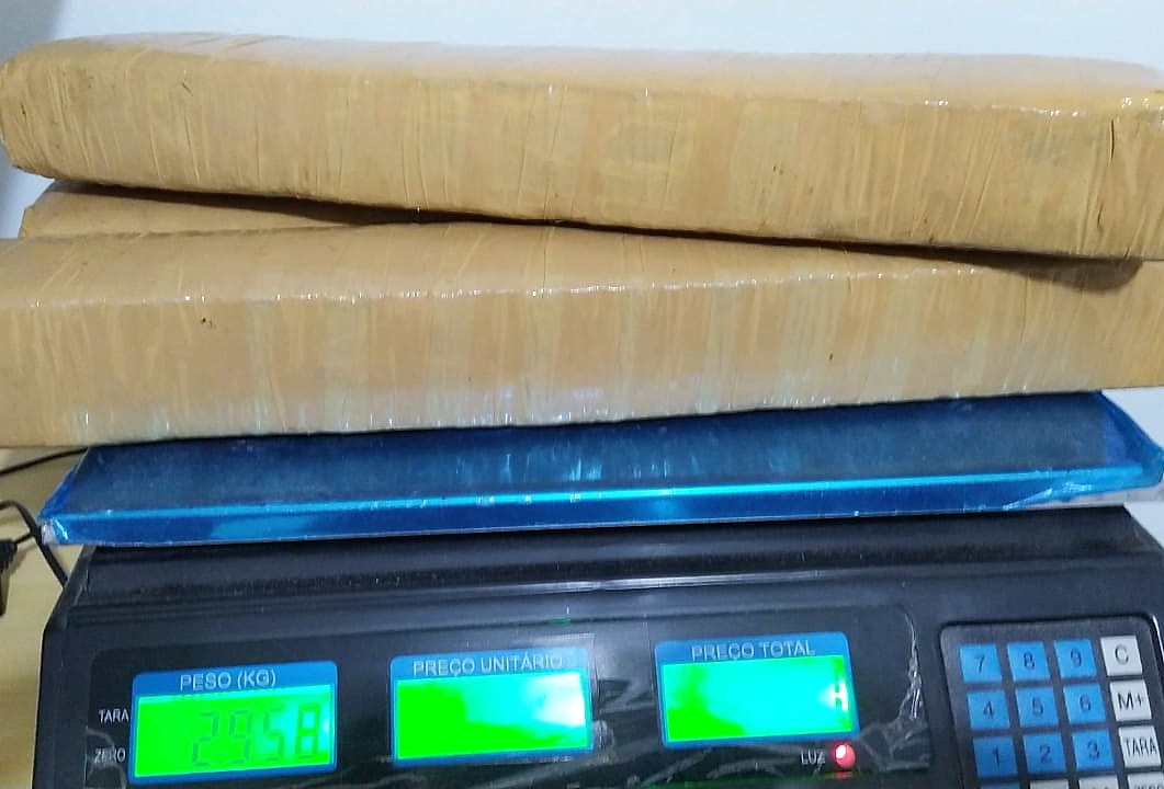 Os policiais encontraram espalhados pelo chão diversos tabletes de maconha, totalizando 2,9 quilos.