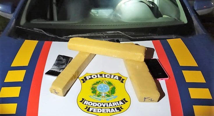 Policiais rodoviários federais apreenderam quase três quilos de maconha na madrugada deste domingo (12), na BR-101 em Paulo Lopes, depois do motorista não obedecer ordem de parada e bater o carro.