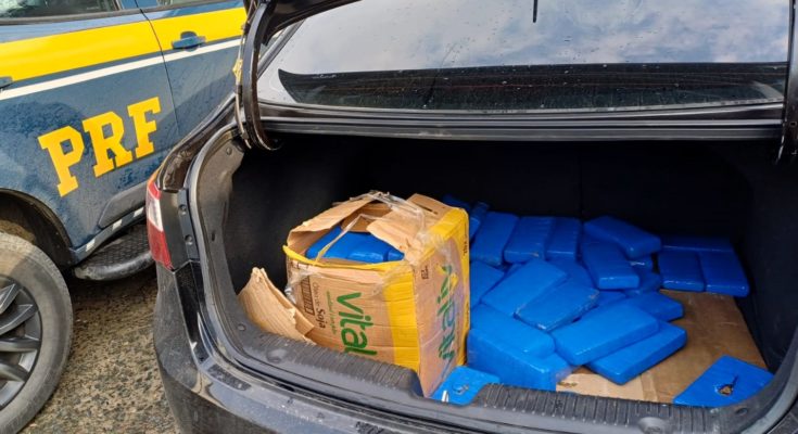 Na manhã desta quarta-feira (26), policiais rodoviários federais apreenderam 50 quilos de maconha durante abordagem de rotina em Penha, na BR-101.
