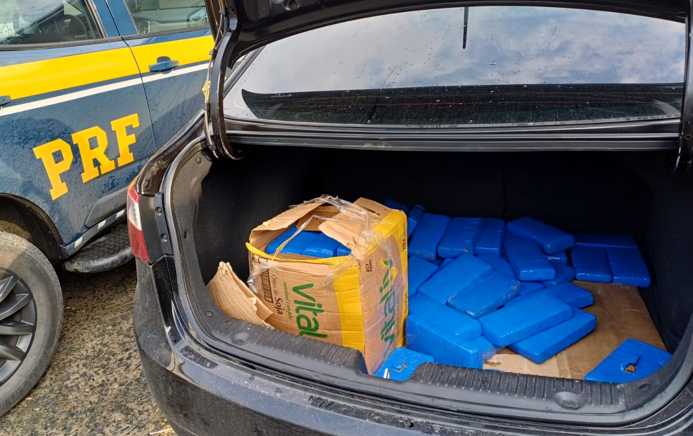 Na manhã desta quarta-feira (26), policiais rodoviários federais apreenderam 50 quilos de maconha durante abordagem de rotina em Penha, na BR-101.