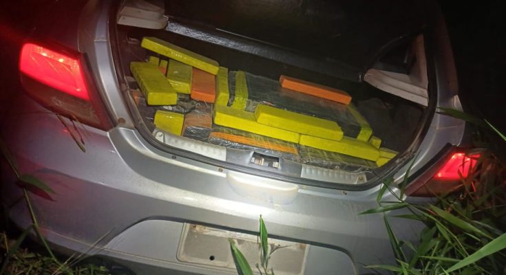 Durante a vistoria no veículo, os agentes encontraram no porta-malas 194 tabletes de maconha. Também houve buscas na região para prender o motorista, mas ele não foi localizado.