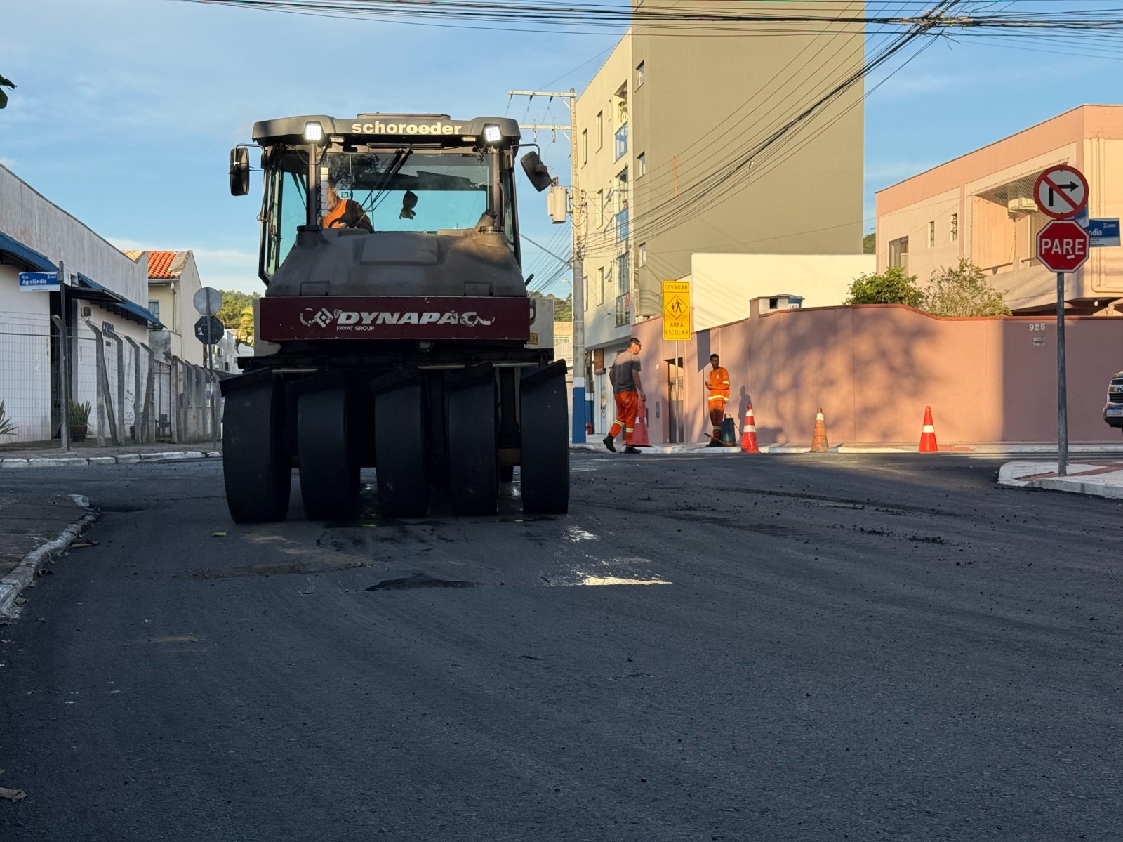 Os trabalhos começaram na última quarta-feira (22), com a fresagem, etapa que removeu a camada antiga da via e preparou a base para a nova pavimentação. No dia seguinte, foi iniciada a aplicação do asfalto, com finalização por meio de rolo compactador na segunda-feira (27).