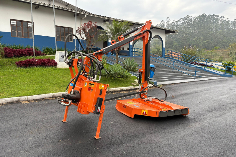 Acoplada a um trator, a roçadeira articulada permite a limpeza e manutenção de áreas com vegetação densa e irregular, como margens de rodovias e terrenos com declives ou obstáculos, além de poda de arbustos e cercas vivas. Com flexibilidade e alcance, a ferramenta garante agilidade na execução de tarefas complexas de limpeza em locais de difícil acesso.