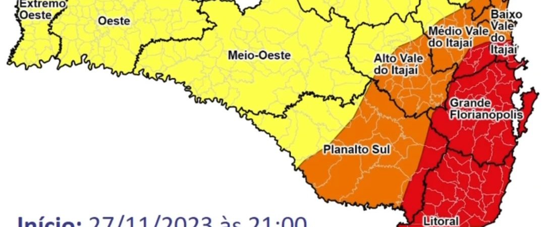 Santa Catarina novamente será atingida por temporais com chuva intensa e volumosa nesta terça-feira