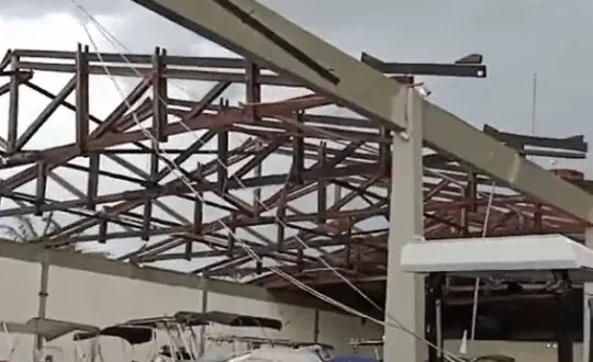O evento climático severo desencadeou fortes ventos que literalmente arrancaram a cobertura do estabelecimento, deixando um cenário de caos e destroços.