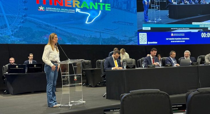 Durante o segundo dia do Programa Alesc Itinerante em Balneário Camboriú, a prefeita Juliana Pavan apresentou números relacionados à segurança pública na cidade e o trabalho que tem sido feito na área desde que assumiu a gestão, em janeiro de 2025. Na oportunidade, a prefeita aproveitou para pleitear auxílio dos parlamentares para o aumento do efetivo da Polícia Militar no município.