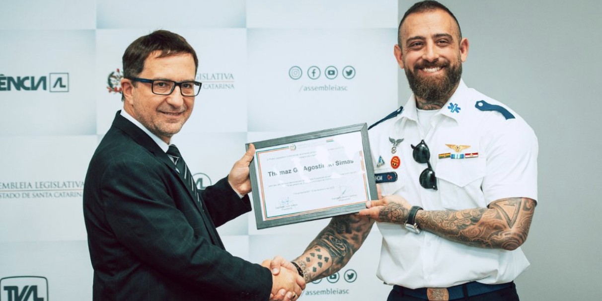 Servidor de Camboriú é homenageado por salvar oito pessoas em enchente de Janeiro