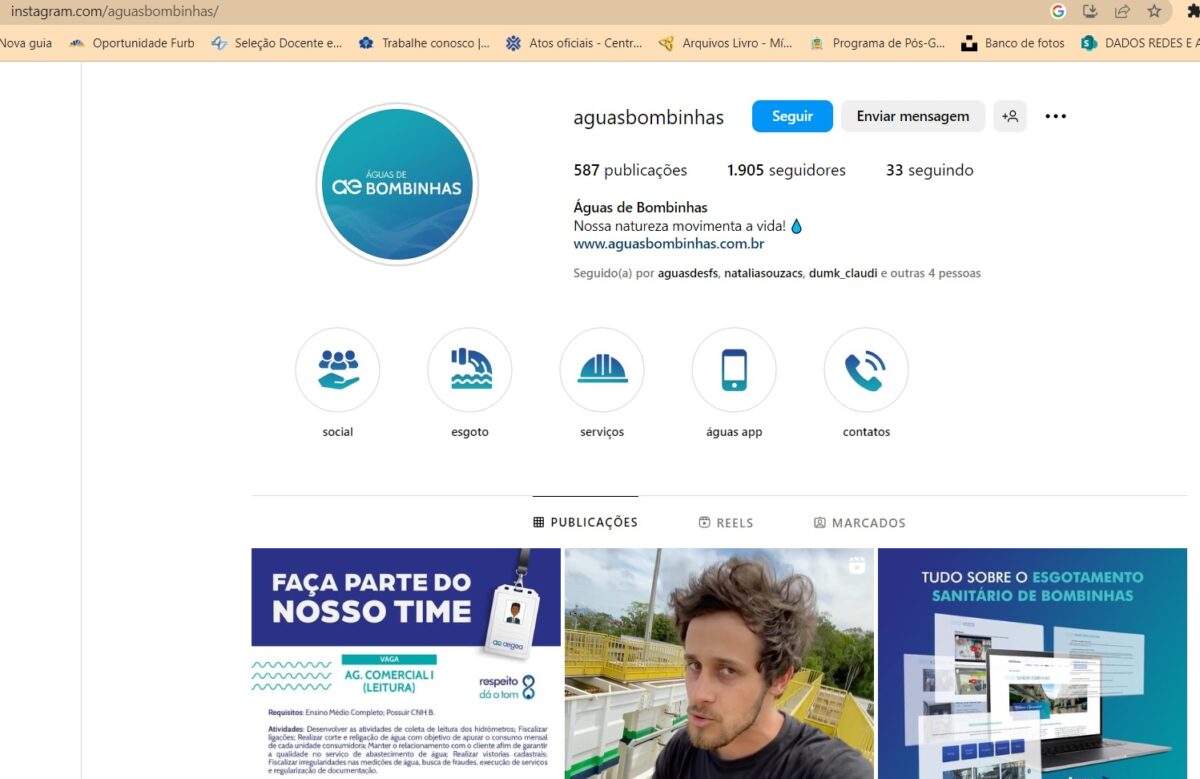 Você já segue a Águas de Bombinhas no Facebook e Instagram? Não perca tempo, nas redes sociais você fica por dentro de todas as novidades da empresa. A concessionária dispõe de um setor específico para as comunicações da empresa, na produção e divulgação das notícias, publicações de materiais nas redes sociais e envio de SMS para os moradores.