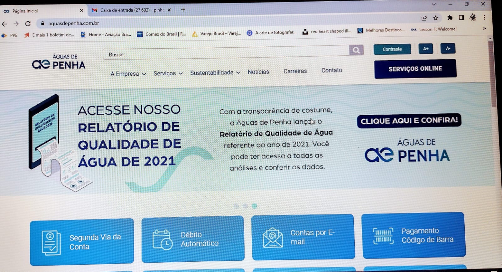 O site da Águas de Penha é uma ferramenta importante de comunicação e busca de informações sobre os serviços da concessionária. A página na internet www.aguasdepenha.com.br traz links para diferentes serviços. Nele, é possível emitir segunda via da fatura de água, programar o pagamento via débito automático, ver o histórico de consumo do imóvel e atualizar o cadastro junto à concessionária.