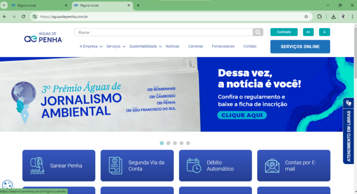 O site da Águas de Penha é uma ferramenta importante de comunicação e busca de informações sobre os serviços da concessionária. A página na internet traz links para diferentes serviços. Nele, é possível emitir segunda via da fatura de água, programar o pagamento via débito automático, ver o histórico de consumo do imóvel e atualizar o cadastro junto à concessionária.