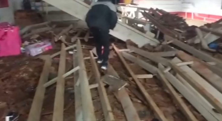 Várias pessoas ficaram feridas após a queda de um telhado em Guatambu, próximo a Chapecó.