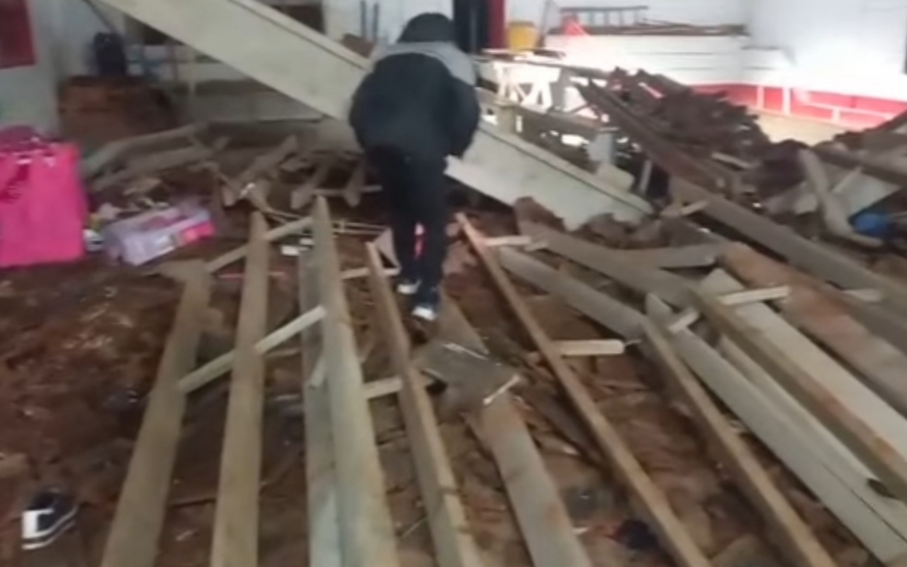 Várias pessoas ficaram feridas após a queda de um telhado em Guatambu, próximo a Chapecó.