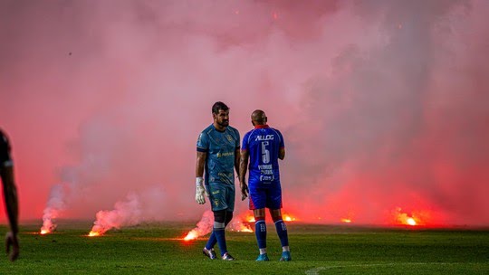 A súmula do árbitro Braulio da Silva Machado relata ainda o lançamento de outros objetos e confronto entre torcedores do JEC e a Polícia Militar.