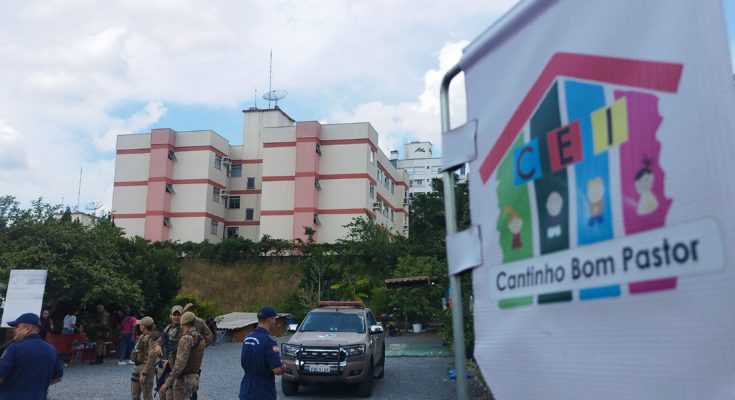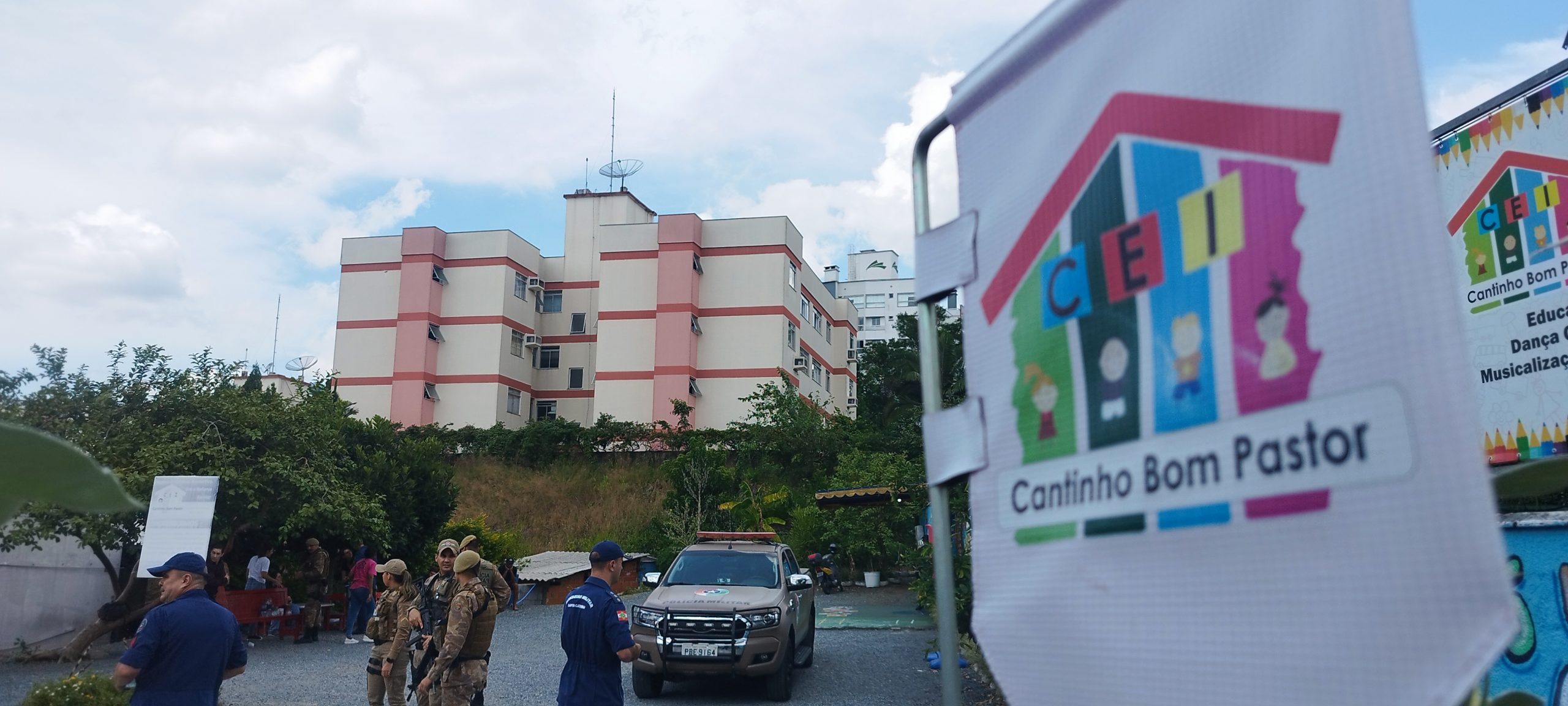 A Polícia Militar de Santa Catarina (PMSC) informou que o homem de 25 anos teria pulado o muro do Centro de Educação Infantil (CEI) Cantinho do Bom Pastor, na rua dos Caçadores, no bairro Vila Velha. Cerca de 40 crianças estariam usando o parquinho no momento da invasão.