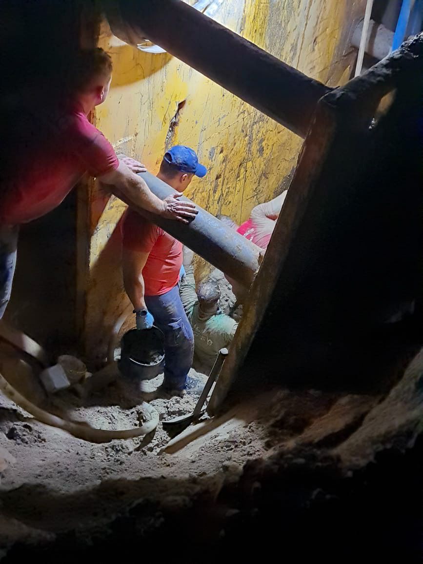 Para retirar a areia que soterrou os trabalhadores, foi utilizada uma retroescavadeira. No entanto, devido à movimentação do solo, a tubulação de água da rede de abastecimento acabou estourando, resultando em uma inundação na escavação. A água chegou a atingir uma altura de aproximadamente 3 metros.