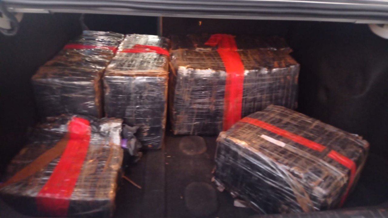 Dentro do carro do fugitivo, grandes pacotes de maconha estavam espalhados no banco traseiro e no porta-malas. Somados, chegam a 210 quilos de droga.